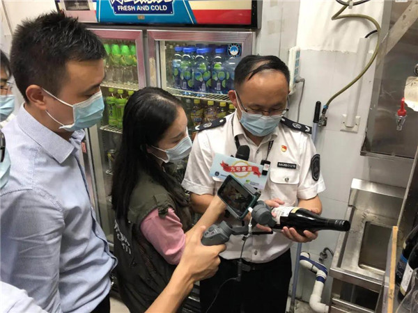 8月28日晚上,市场监管局食品经营处副处长鲁晓利带队对位于福田区的“纯K”车公庙店KTV开展了“九号查酒”突击检查,沙头监管所执法人员、新闻媒体、酒类鉴定专家、行业协会代表共20余人参与了当晚的行动。