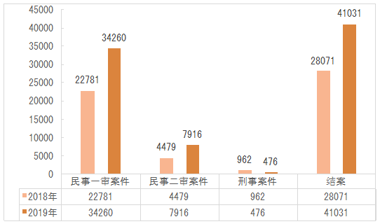 图5.2018-2019年深圳市各级人民法院知识产权案件量